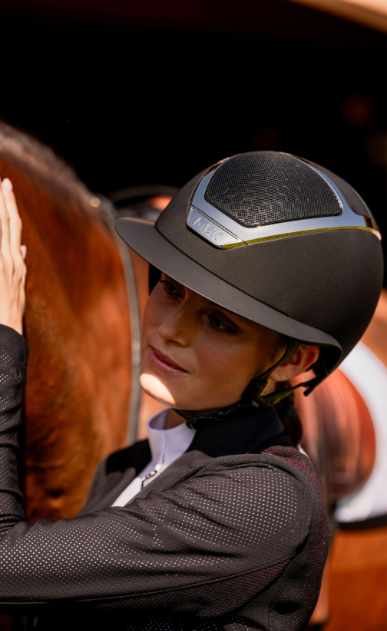 Con acabados cromados y diez colores disponibles, el Star Lady Chrome seduce a los jinetes más exigentes. Su carcasa exterior de ABS es ligera, duradera y está recubierta con una tela impermeable y resistente a los arañazos, fácil de limpiar. La correa de cuero ecológico, suave e hipoalergénica, evita irritaciones. El acolchado interior 100 % lana merino ofrece transpirabilidad, control térmico y propiedades antibacterianas. La calota de poliestireno expandido, con tres densidades, brinda máxima protección sin sacrificar comodidad. El sistema de ventilación con rejillas tipo colmena mejora la circulación del aire, y el sistema de ajuste patentado Fit System asegura una adaptación precisa y estable, apoyando la zona del cuello.