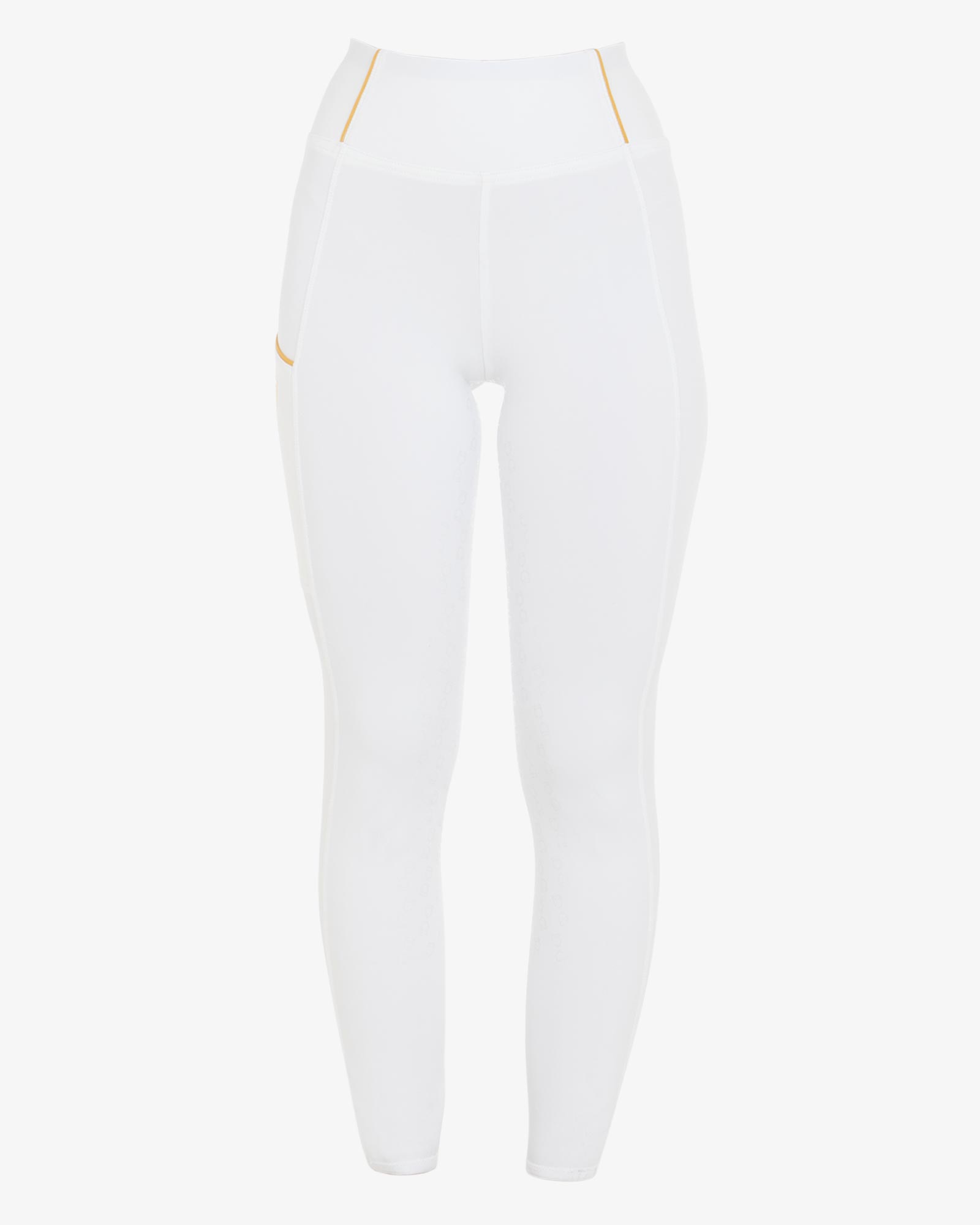 Leggings ajustados de mujer full grip blanco Equestro, leggings Equestro X FISE para mujer, corte ajustado, con agarre completo de silicona a lo largo de la pierna y logotipo. Fabricados en tejido técnico y elástico.
