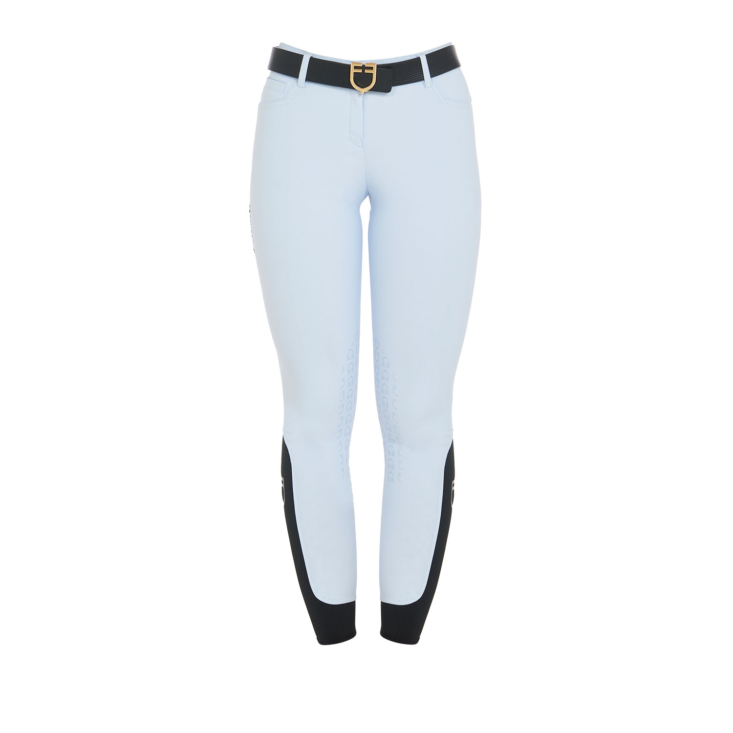 - Transpirable: ayuda a regular la temperatura corporal. - Elástico: favorece un ajuste perfecto. - Bolsillos frontales prácticos. - Gráficos con inscripción y logotipo ecuestre en la trabilla trasera del cinturón. - Gráficos con texto y logotipo ecuestre a lo largo del muslo derecho. - Agarre de silicona con logotipo ecuestre gráfico en el interior de la rodilla. - Inserto de licra en la base del tobillo.