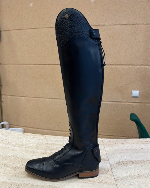 Fabricadas en un hermoso cuero argentino, estas botas poseen maravillosos detalles de diseño en la parte superior y una brillante moneda IR para ese brillo extra en tu paseo. La suela de goma antideslizante hecha a mano y el talón resistente te ayudan a mantener el agarre en el estribo, mientras que el suave cuero te brinda confort. Con su fuerte cremallera obtienes un cierre rápido y fácil, mientras que el inserto elástico a lo largo de la cremallera garantiza un ajuste perfecto para tu pierna.