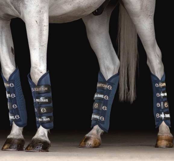 Los protectores de transporte Equityum "Pro-Travel" son más cortos que los protectores de transporte clásicos y no cubren las articulaciones de la rodilla ni del corvejón. Por lo tanto, son adecuados para caballos a los que no les gusta que les vendan esas zonas.
