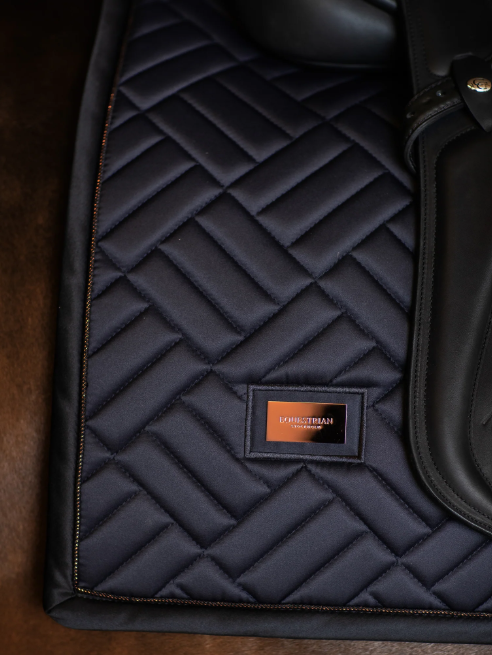 Elegante mantilla con acolchado moderno en azul marino oscuro con detalles en negro y oro rosa. Decorada con el emblema de la Federación Ecuestre de Estocolmo en oro rosa. El material de bambú es perfecto para todo el año gracias a su efecto termorregulador: fresco en verano y cálido en invierno. Además, es de secado rápido, transpirable y antibacteriano.