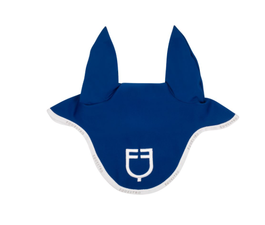 Orejeras Tejido Técnico Equestro Azul/Blanco, mosquero en tejido técnico transpirable y extensible para garantizar un ajuste perfecto. Presenta una decoración con ribete en contraste con las letras Equestro y el logotipo delantero. Cómodo y eficaz. Color Azul/Blanco.